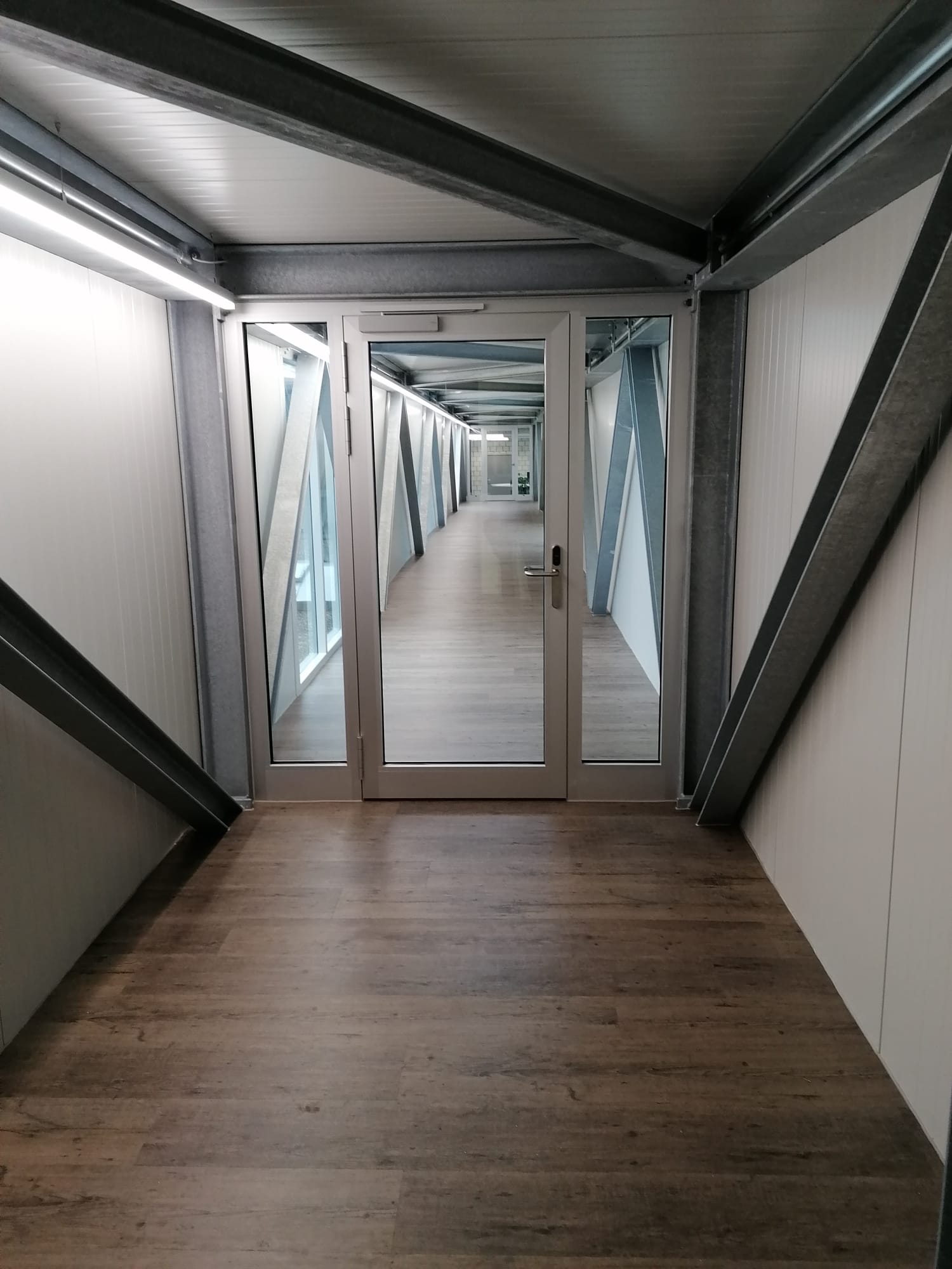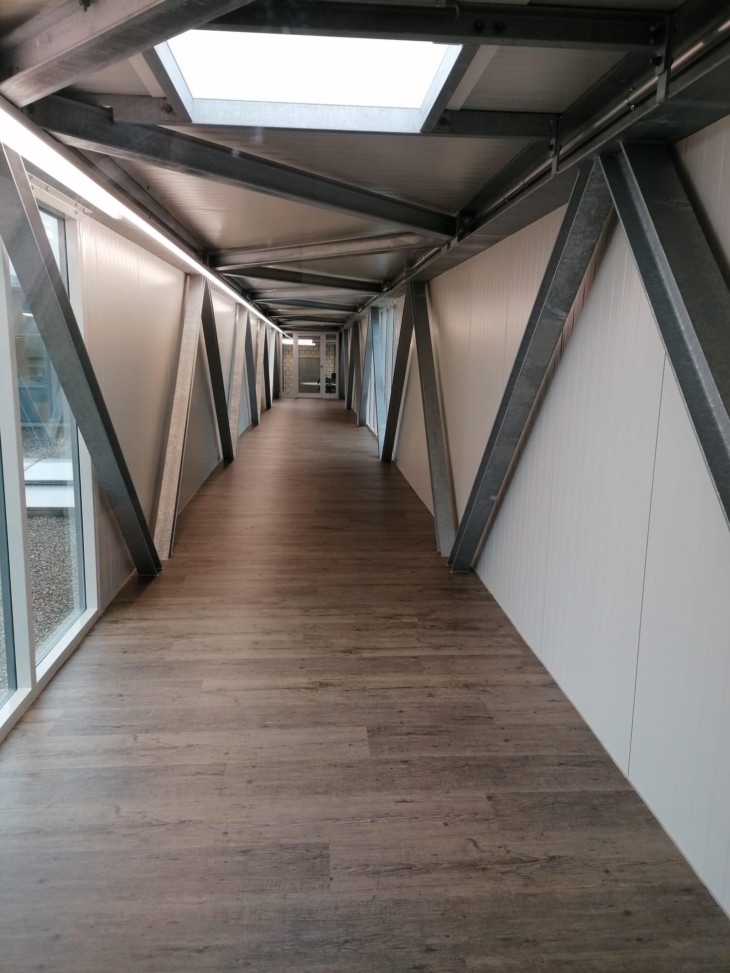 In Hitzkirch durften wir eine moderne Passerelle montieren, die sich über eine Gesamtlänge von rund 28 Metern erstreckt. Unser Leistungsumfang umfasste die Montage der Stahlkonstruktion sowie die Planung, Herstellung und Montage der Fassade, Dach und dem Boden.